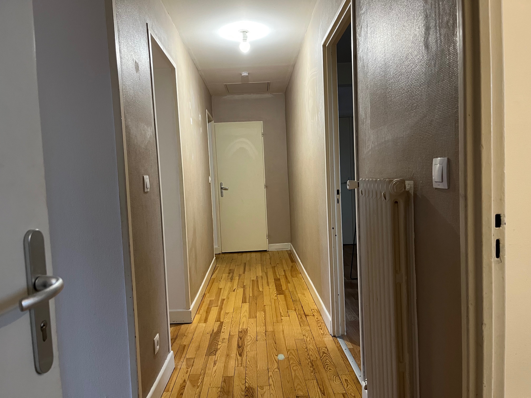 L’appartement est composé d’une entrée, d’un séjour, d’une cuisine , de deux chambres, d’une salle de bain avec wc et d’une cave.